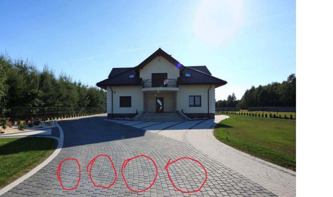 Wiadomo, że musi być wolne 1,5m chodnika. Ale co w przypadku, gdy stanąłem na szerokim polu z kostki wyłożonym przy parkingu? Kostka oddziela parking od budynków, jest to taki mały "placyk" przed budynkami. Stoją tam zawsze samochody, stanąłem tam teraz i ja i jestem ciekawy czy mi miejskie wjebią za to mandat bo te kurwy potrafiły mi nawet o północy na osiedlówce wsadzić wezwanie za wycieraczki, jak zostawiłem auto na godzinę. Z drugiej strony jakby podpiąć to pod chodnik to nikt mi nie udowodni, że to ja nie zostawiłem 1,5m miejsca dla pieszych, bo obok mnie jeszcze stoją 3 auta. A jeśli można za to wlepić mandat to dostanę, bo w tym kurewskim mieście zawsze jakiś dziad zadzwoni na straż. Dla zobrazowania przedstawiam niżej przykład. Kółka to samochody, dom to jakiśtam budynek.