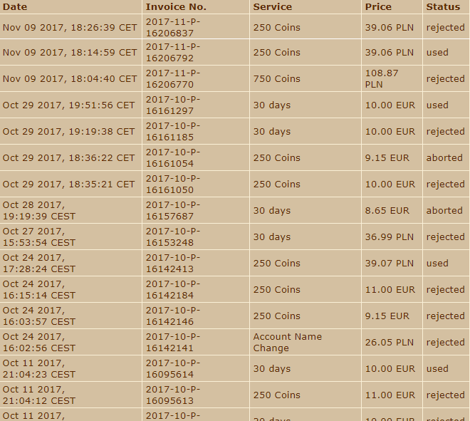 Preferowana forma płatności: Przelew, PSC lub Tibia Coins.