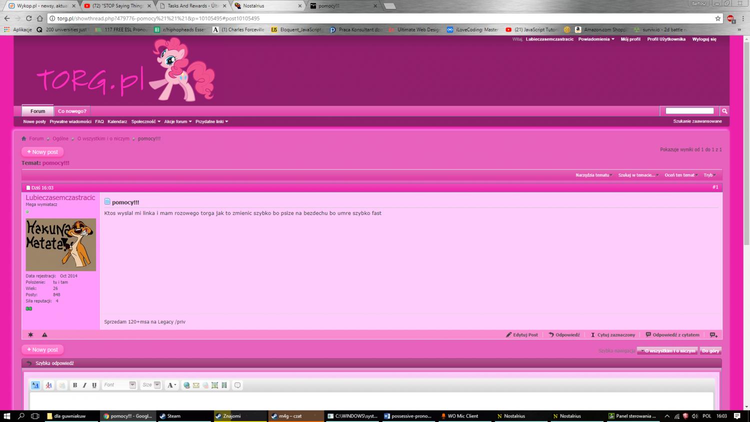 Ktos wyslal mi linka i mam rozowego torga jak to zmienic szybko bo psize na bezdechu bo umre szybko fast