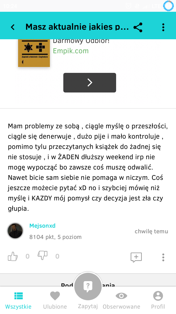 typowy problem egzystencjonalny czlowieka po maturze, ktory uzmyslawia sobie, ze zycie to wyscig szczurow a sam jest zywym gownem