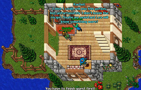 Na serwerze oprócz wszystkich questów dostępnych na prawdziwym Rookgaardzie (wraz z tymi polegającymi na wymianie przedmiotów) dostępny jest w pełni działający quest log. Oprócz nich, dodane są także questy z lepszym uzbrojeniem, na kupowanie lepszych jakościowo potionów, a już w trakcie testów są questy Postman, Norseman Outfit oraz wiele innych, dostosowanych specjalnie na potrzeby wyspy.