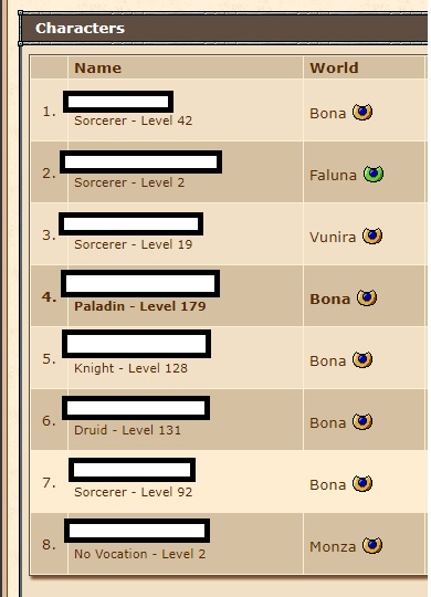 ZdjÄcie: wykaz postaci z tibia.com , oraz zdjecie kazdej postaci 100+ na koncie z widocznymi skillamiZałącznik 365583Załącznik 365582Załącznik 365581Załącznik 365580