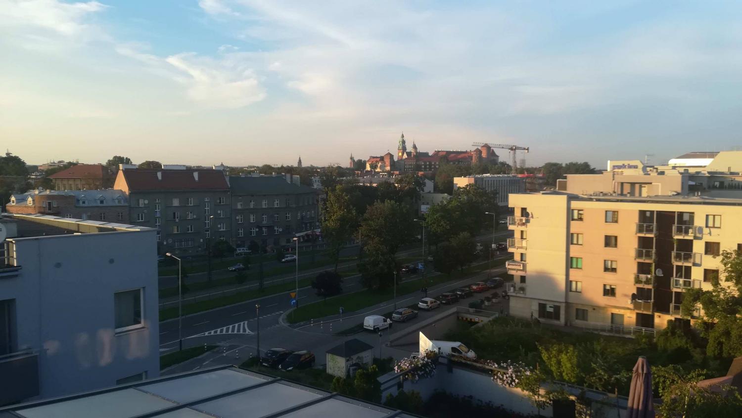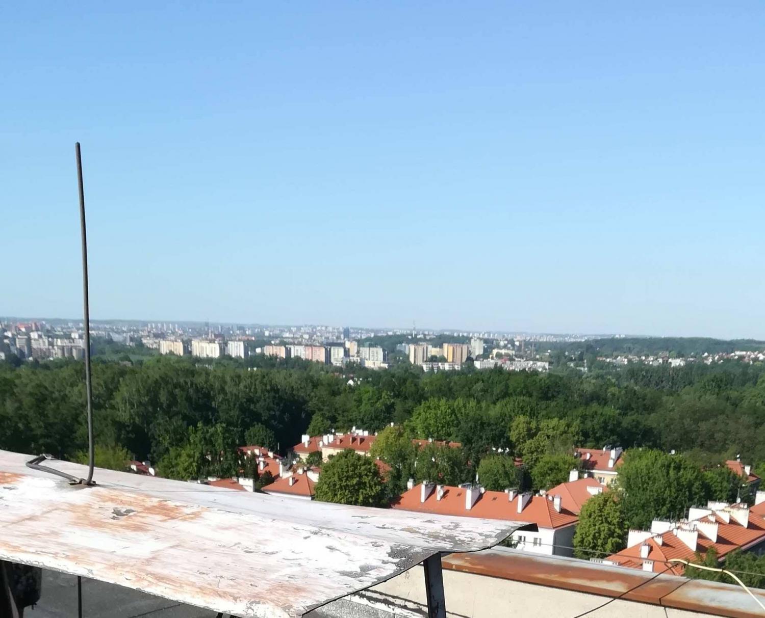 przez plot, po rynnie na nadbudówke, oknem do środka a potem rura w stronę nieba. ale są w Krakowie ciekawsze dachy z ładniejszymi widokami ;)