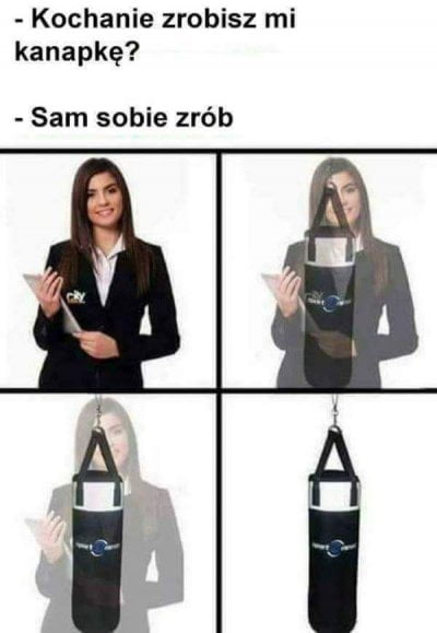 Podłączę się bo szukam innego mema. Na obrazku typek trzymał w ręce pasek i szykował się do napierdalania żony. Żona natomiast kucała w kącie broniąc się przed nim. Był do tego dodany napis mniej więcej takiej treści: