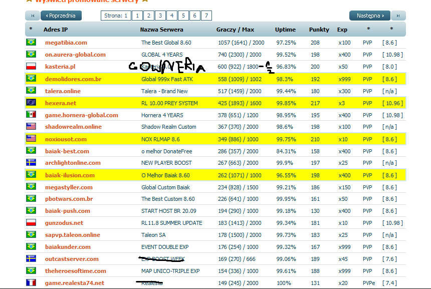 Oznaczyłem gówniane serwery, reszte możesz miało sprawdzać i grać z Makakami.