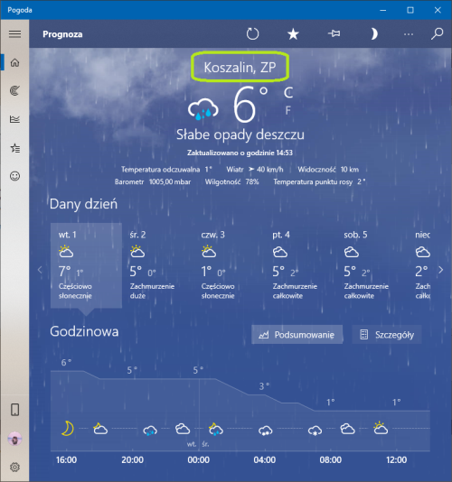 Posiadam ręcznie wskazaną lokalizację swojego miasta, jednak z pozycji menu start, wyświetla mi się miasto "Warszawa".