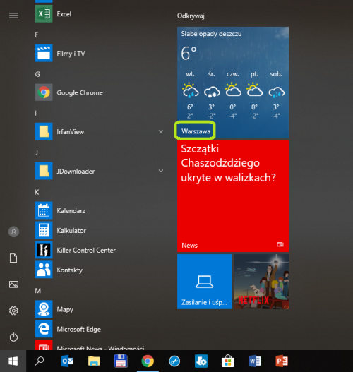 [Windows 10] Kafelek "MSN Pogoda" w menu start, wciąż pokazuje lokalizację "Warszawa"
