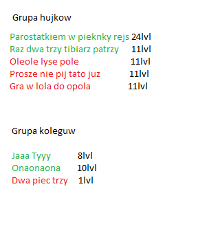 dokladnie tak to ma wygladac, oczywiscie moglbym se grupy/nicki dodawac ale ,zeby ich lvl aktualizowalo i to czy sa online czy off