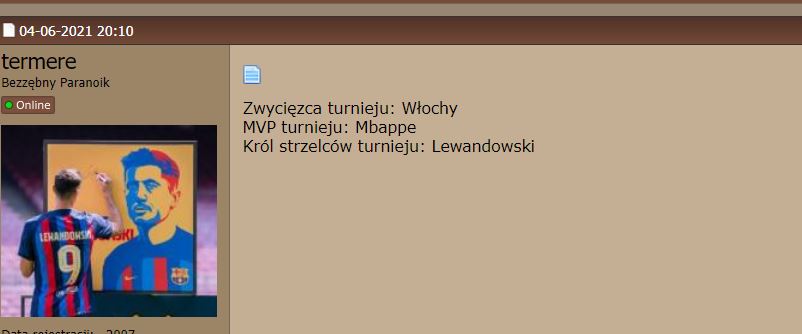 Jak wszyscy dobrze pamiętają w zeszłym roku mieliśmy fantastyczną forumową zabawę w typowanie meczów Euro 2020. Zabawa ta towarzyszy nam już od wielu lat, więc zeszłoroczna edycja została zautomatyzowana :poggers No prawie, bo ktoś musi dodawać te mecze Wyniki były podawane na bieżąco, a organizatorzy nie musieli siedzieć w Excelu i liczyć każdemu punktów.