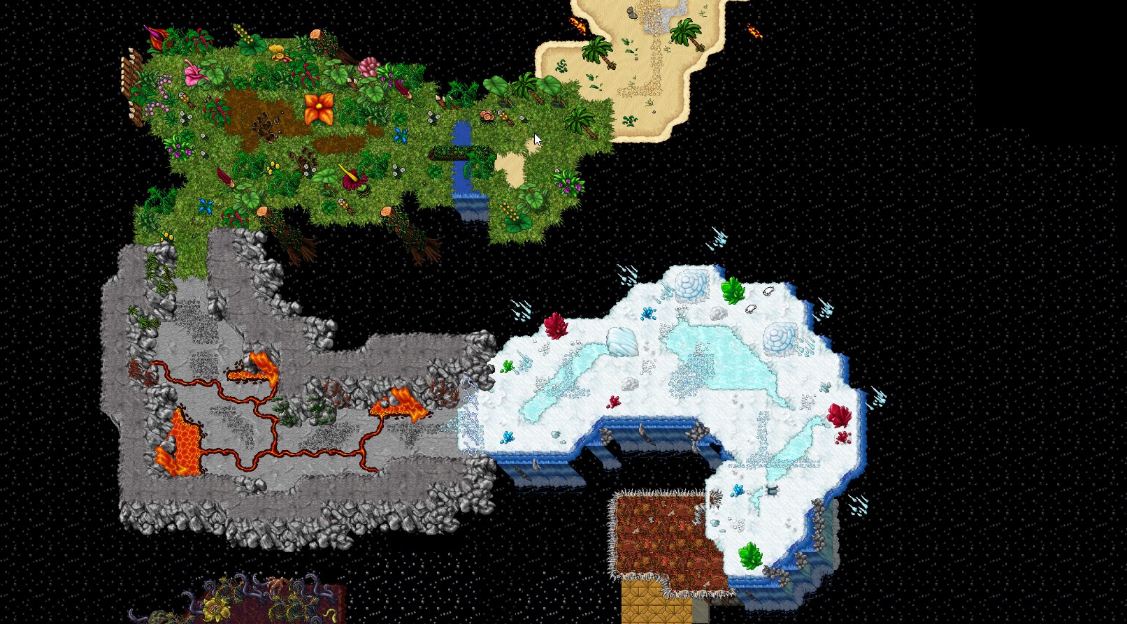 Jeśli szukasz ekscytującej mapy, Hellheim obiecuje Ci ją dostarczyć. Serwer imituje prawdziwą mapę Tibii i dodaje nowe funkcje i stale się rozwija. Odnowione zostały główne miasta. Na serwerze znajdziesz tzw. Trainery offline, online (solo) oraz online z innymi graczami. Oprócz takich podstaw jak pełny Roshamuul, Oramond itd. oraz działające bossy, mapa jest ciągle aktualizowana i rozwijana, aby gracze mieli jak najlepsze wrażenia z gry. Poniżej kilka zrzutów ekranu z nowych obszarów gry.