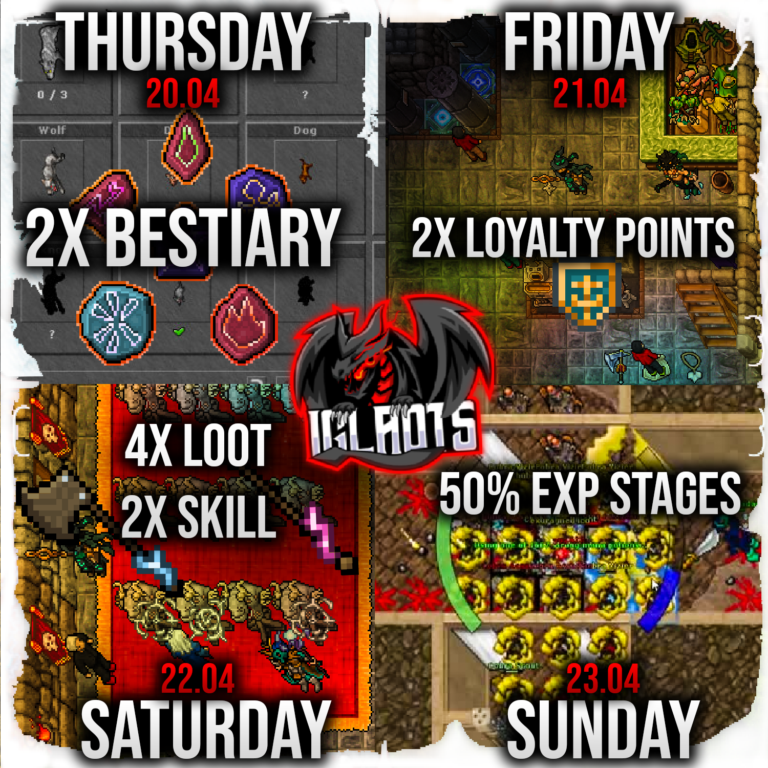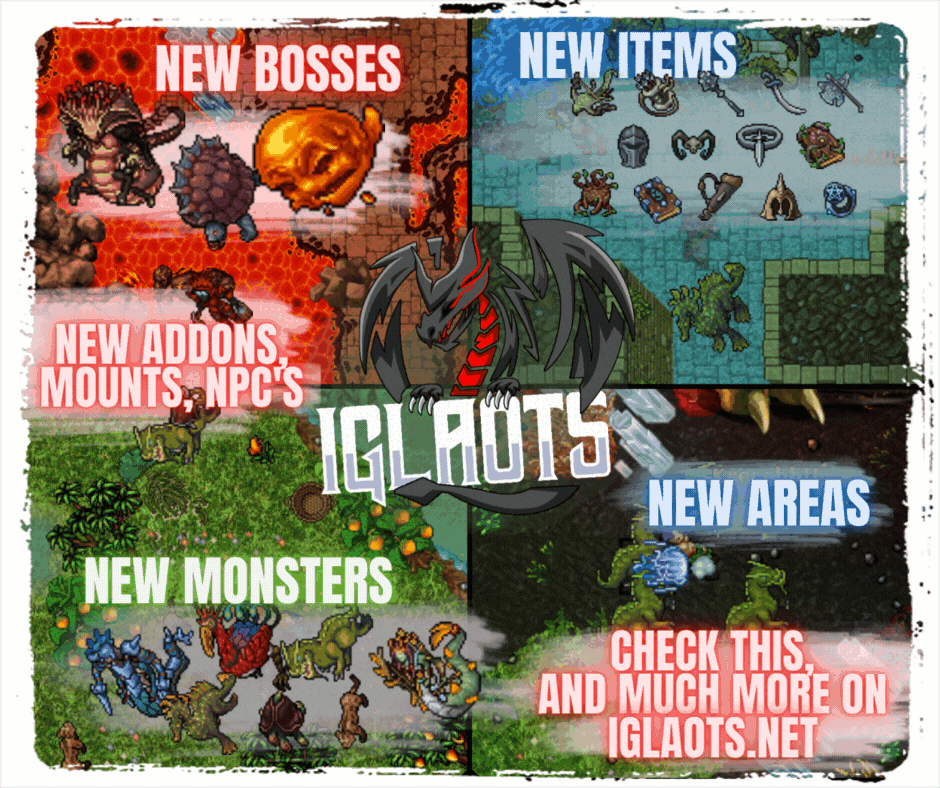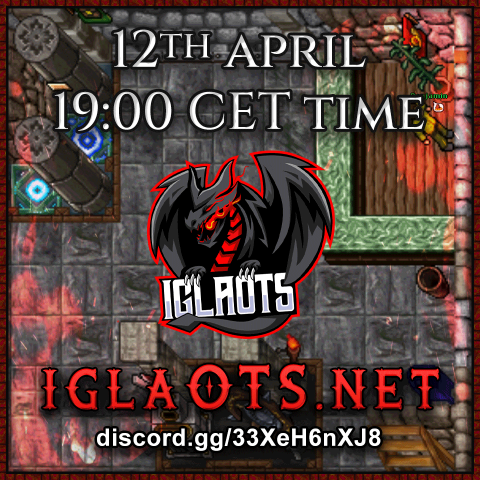 Z radością ogłaszamy, że nowy serwer IglaOTS startuje juz 12 kwietnia o godzinie 19:00 CEST. IglaOTS będzie oparty na kliencie 13.10 z pełną zawartością prawdziwych map (z działającym Soulwar Quest, Gnomeproma z Primal Quest w pierwszej aktualizacji), ale zawiera również customowe miasta takie jak Ul'den czy Zah'din oraz wiele nowych questów, bossów, expowisk. System PvP będzie cały czas ustawiony na Retro-PvP z 5 fragami dziennie.