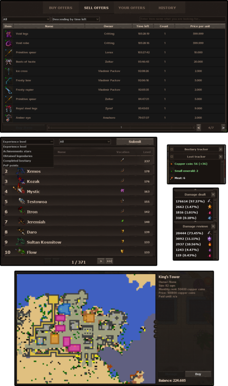 There are also some features that make your life in RA easier: A market system with BUY&SELL offers, a few fast travel points, high scores table and a functional house buying and management system (without auctions). Everything is integrated with our client ingame, that's why we do not litter our website with such information. During the hunt, you can also use our loot and damage analyzer and also the bestiary tracker.