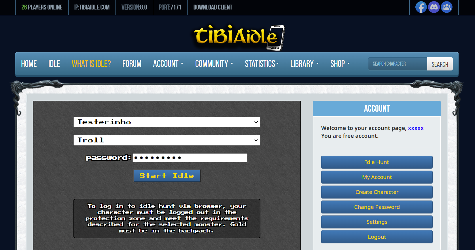 TibiaIdle.com - Połączenie Tibii i gry przeglądarkowej