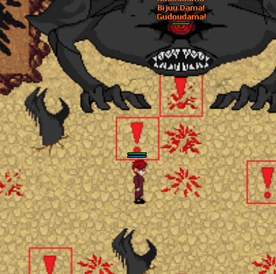 Większość Bossów ma system, w którym trzeba unikać "!" oraz przed wejsciem na Bossa najlepiej czytać tabliczki ostrzegawcze :)