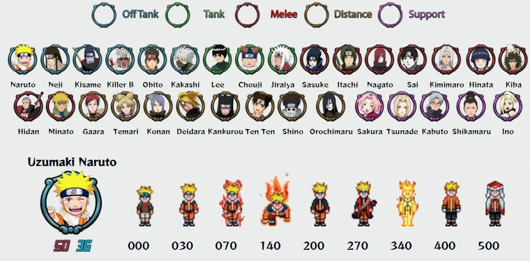 POSTACIE: 31 postaci z uniwersum Naruto, każda z unikalnymi grafikami.