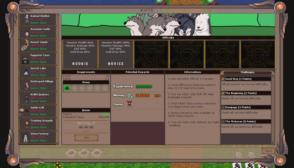 Czeka na Was aż 10 dungeonów. Po ukończeniu danego dungeonu odblokuje się kolejny poziom, na którym zdobędziemy znacznie lepsze nagrody. Na serwerze dostępnych jest aż 6 poziomów