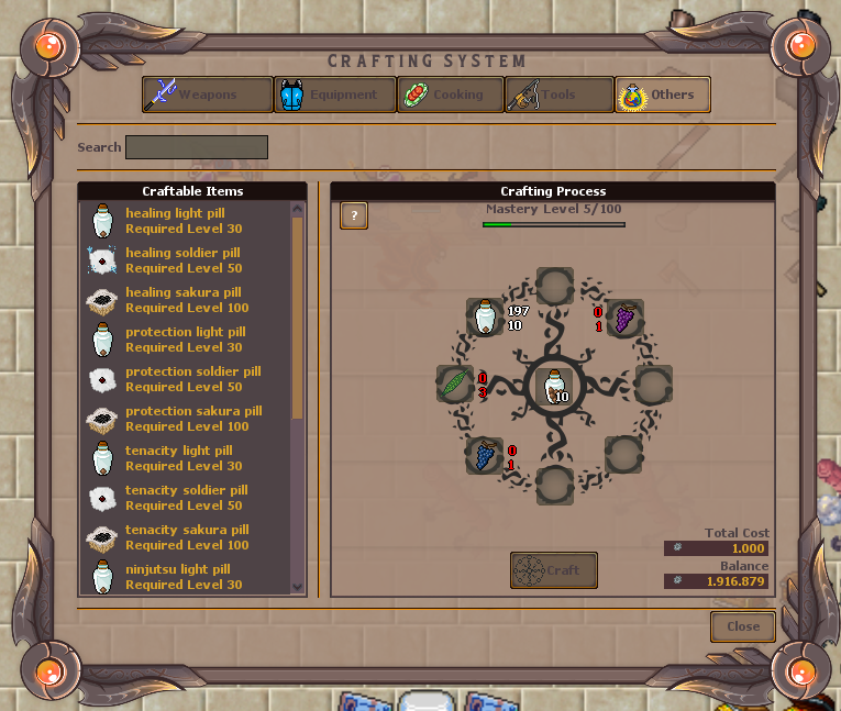 Crafting odgrywa ważną rolę na naszym serwerze – pozwala na tworzenie zarówno pierwszych, jak i końcowych przedmiotów. Dodatkowo, możemy wytwarzać jedzenie oraz mikstury. W tej odsłonie Legends of Shinobi postanowiliśmy wprowadzić zupełnie nowy system craftingu.