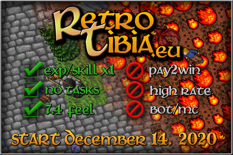 Test server - [Poland] [7.4] RetroTibia74 TestServer (https://otland.net/threads/poland-7-...server.273664/) - serwer będzie włączony do 13 grudnia 2020