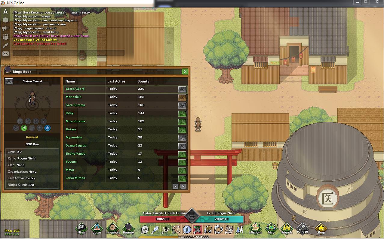 nin online 2d gra RP/PVP grasz sobie w swiecie naruto(ale nie naruto xd), do wyboru masz 8 klas/masterek - water, wind, earth, lightning, fire, taijutsu, weapon master, medic(i sub-klasy dla niektorych z nich)