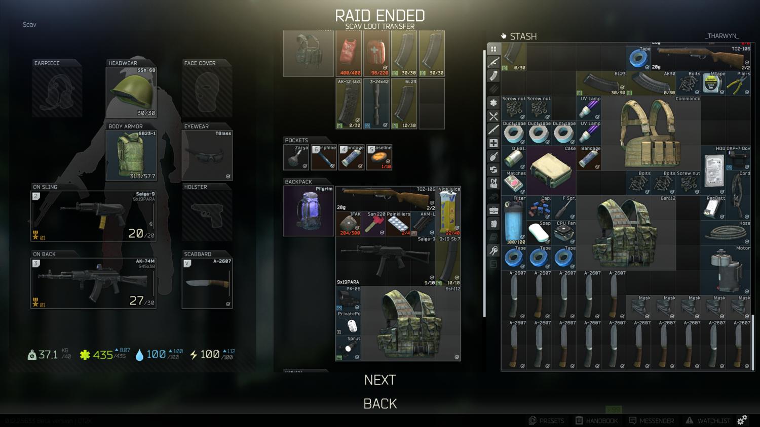 questy musisz robic jako PMC (nie zalicza jako scav) musisz zobaczyc jak bedzie Ci udawalo przezywac, jesli bedziesz miec problem, wskakujesz np na raid w nocy z sama podstawka, lecisz wylootowac quest item gdzies z szafki czy cos i jazda do wyjscia