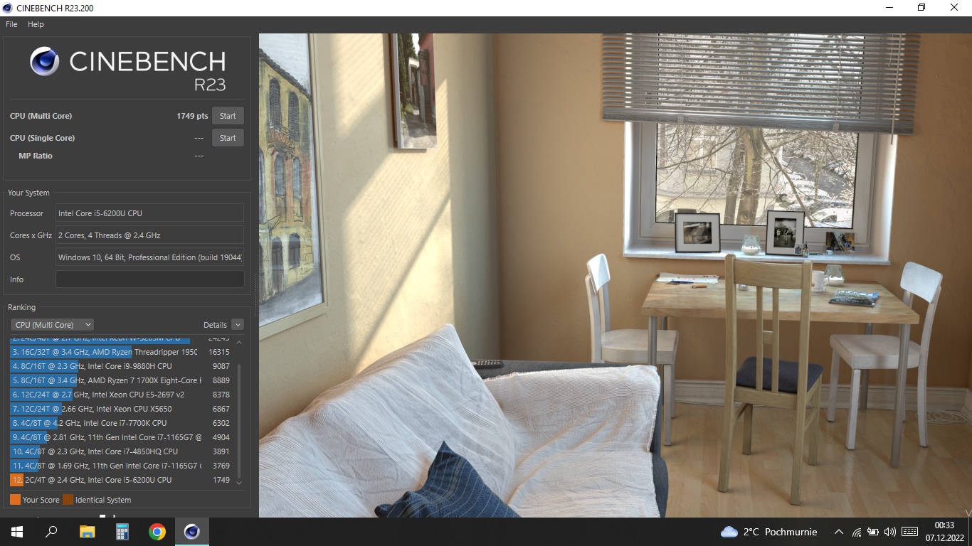 Możesz uruchomić cinebench r23 na tym swoim laptopie z użyciem wszystkich wątków najlepiej dwa razy po sobie, bo jestem ciekawy wyników tego twojego laptopa.
