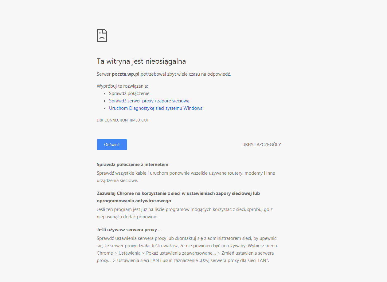 Co jakiś czas pewne witryny nie chcą mi się załadować, chociaż internet jest, a inne witryny wczytują się jak należy. Coś tam mieli, mieli, a potem wyskakuje ło takie coś