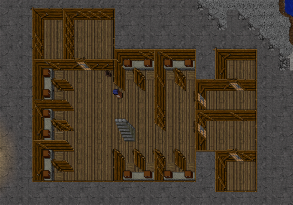 Kończę zarys miasta - głównego (na +1 względem mainmainlandu), wyższego (+2) i dolnego hatfu slamsu +0 , idzie pomału, ale staram się zachować tibijską naturalność i grywalność - tj. zbalansowaną przestrzeń, nie nawalam wszystkiego jak leci, jak to często robią na (szczególnie tych ambitniejszych) customach, ale też stronię od pustych przestrzeni, a i mam na względzie jakieś złodziejskie przejścia, jak i zaułki, w których będzie można poskillować se na żulu za parę gp, co nie, a i placyk z pręgierzem, gdzie będzie można jebnąć se pomidorem w oszusta jakiego, co nie