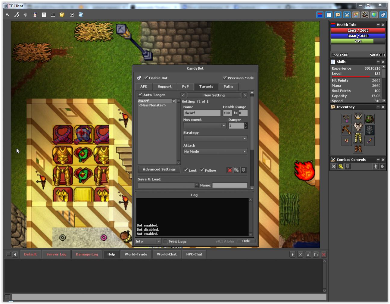 edit: osobiscie przetestowalem tego cavebota wiekszego gowna nie ma zaczyna biegac w kolko i przejstaje sie leczyc po zabiciu 1 potwora chyba wiedzieli co robia :P