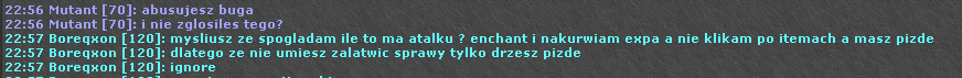 Jak temu cziksowi to huntem w grze groza bo napisal o bugu na forum xDD Niezly otsik nie wiem hafexo na Twoim miejscu dokladniem bym zbadal kto ile na tym expil i nie wiem wyjebal goscia z banem na pare dni zeby sie otrzasnal bo z takim podejsciem do servera to typy moga Ci jechac na zbugowanym npcku i dodawac sobie dziennie np 3lvle i nigdy tego nie zglosic