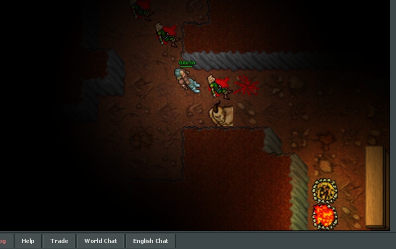 tutaj brakuje po prostu kratki podłoża, jest dziura przez którą widać cyklopa na dole (prawdopodobnie też da się exani hur down zajebać), a to dlatego, że na owej mapie właśnie niektórych brakowało, ponieważ tzw. kratki "disguise", czyli imitujące kratki o innym ID (w tym większość kratek z ukrytymi skryptami), zostały utracone w źle przeprowadzonym procesie konwersji, to samo stało się np. z quest boxami