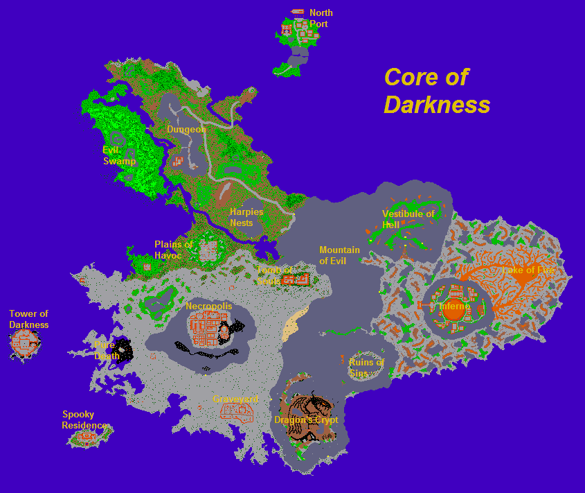 Dawno nic nie wrzucałem, to teraz pozwolę sobie przedstawić moją radosną twórczość, czyli kontynent Necro, Dung, Inferno w finalnej wersji - raczej większych zmian nie przewiduję, może jakieś małe niewidoczne poprawki. Nazwy to też moja radosna twórczość, może i średnio potrzebne, ale tak mi się wymyśliło to niech sobie będzie. Jeśli chcecie eksport minimapy z innych poziomów (podziemia, ew wyżej to też mogę wrzucić).
