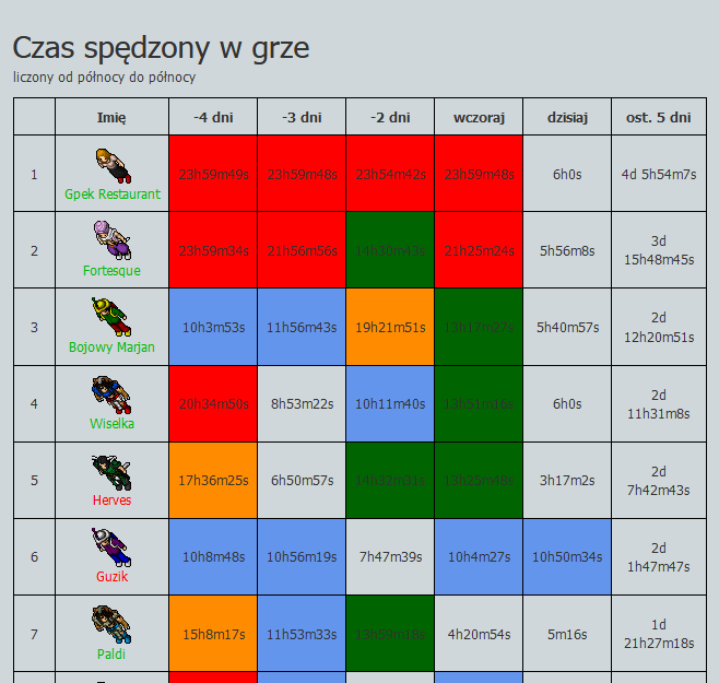 @Rahilux ; dzięki za czujność. Jak zmieniałem skrypt do synchronizacji danych między serwerami, to zapomniałem o czasach online dla Xyli, ale już poprawiłem - https://www.rookgaard.pl/insomniac/xyla