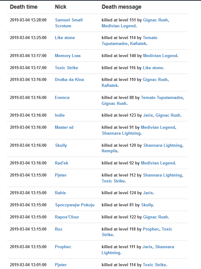 Temu havocowi, to powiem tylko tyle. Synku, jest 2019 rok, na nikim już w tej gierce nie robi wrażenia wbijanie levela, "rządzenie" i temu podobne bzdety. Wojny są tylko po to, żeby się pobić i mieć fun, ale nie niosą za sobą żadnych większych skutków. Jedne wojny się kończą, to zaraz zaczynają się nowe. Jedni ludzie się nudzą i odchodzą, to w ich miejsce przychodzą inni i tak to się kręci. Od was też już dawno jakieś mexy posprzedawały chary, brianki zrobiły quita itd. Sytuacja zdąży się pozmieniać jeszcze ze 100 razy. Jedynym skutkiem będzie to, jak ten czas zapamiętamy i jak zapamiętają nas. Więc kiedy my mieliśmy fun, bijąc się tu ze wszystkimi praktycznie od 20 levela, ty jedynie expiłeś, codziennie wysyłając mi dziesięcinę ze swojego loota i pytając o zgodę, za każdym razem, gdy chciałeś z kimś iść na hunta albo robić questa. I tak oto nas zapamiętają jako ten "pk team", z którym - mimo małej liczebności i niskich leveli - każdy się musiał liczyć; natomiast ciebie nie zapamięta nikt. Chyba że jako tego, który robił z siebie debila na forum (dlatego reszcie sugeruję mu nie odpisywać, bo pewnie właśnie o to mu chodzi, by jakkolwiek zaistnieć i zostać zapamiętanym).