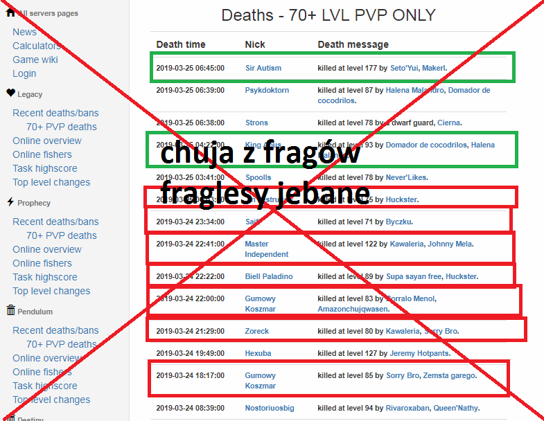nie no chlop skilluje w kanale carlin na prophecy i sie cos pluje ze go zabili xD niech jeszcze domek na hotelu kupi i expi na hellgate