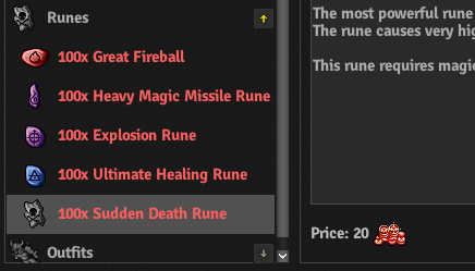 - Intense healing runes, ultimate healing runes and potions (mana fluids, potion of power, etc.) will now be used on caster instead of top most creature, if there is more than one creature on the same position.