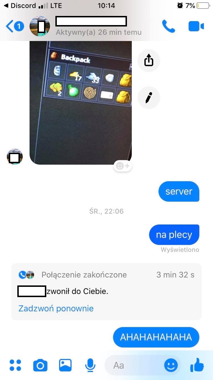 Ewentualnie jak ktoś jest chętny mogę udostępnić jeszcze rozmowy mojej z Ochmana i jego tłumaczenie się xD