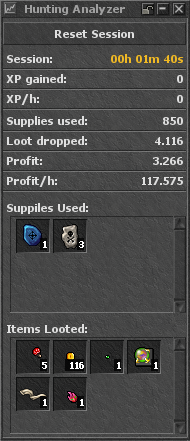 Klikajac w itemki mozna edytowac ceny supplies/loota, wiec analizator moze byc bardzo precyzyjny - mozna tez to miec gdzies i uzywac domyslnych cen przedmiotow.