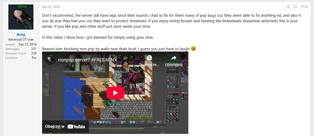 Niestety nie zgadłeś ale skoro takie mydliny rzucasz to możesz tutaj wrzucić filmik jak boce na Twoim zbugowanym otservbr sciagnietym z neta no i wtedy wszystko bedzie wyjasnione, niestety nic takiego nie miało miejsca, brak Ci argumentów dlatego piszesz jakies wysrywy a ja Ci jasno i wyraźnie napisałem co i jak np odnośnie ONLINE co potwierdza otsservlista XD