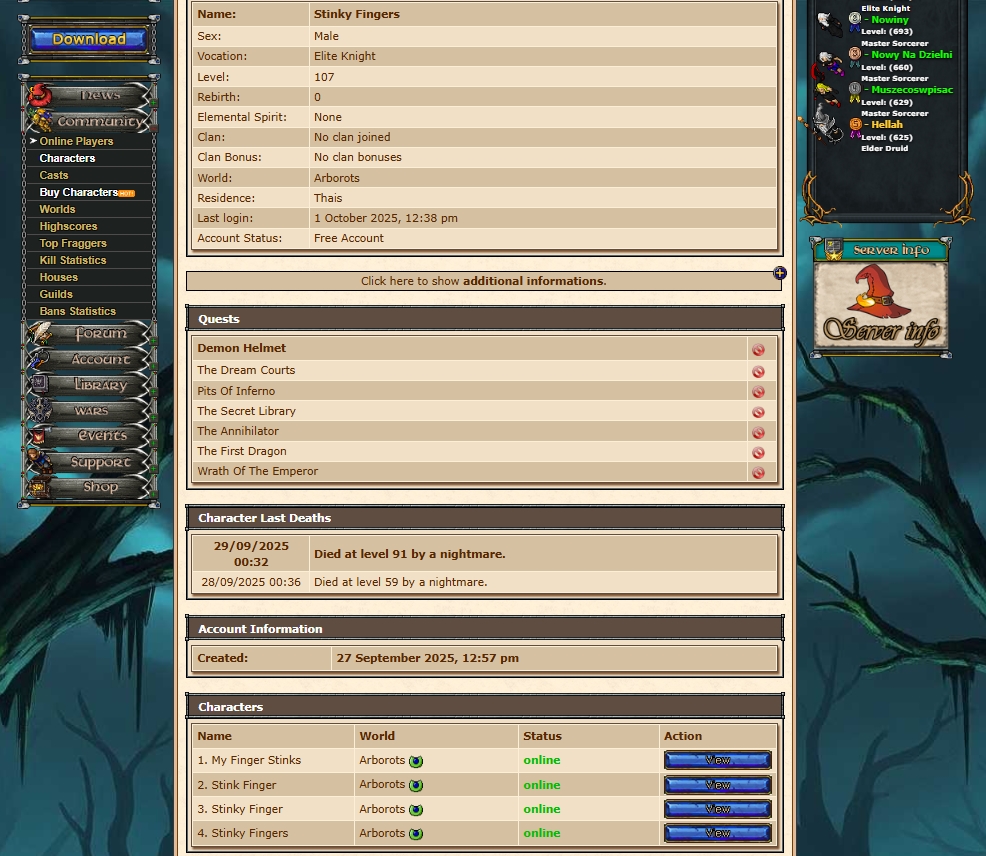 Zdajemy sobie sprawę, że często przenosicie się między OTS-ami. Kiedy Wasz obecny serwer przestanie działać, Arborots będzie na Was czekać! To idealny moment, aby skorzystać z systemu zaproszeń – przyprowadźcie do nas swoje gildie i znajomych. U nas czeka ciągły rozwój, aktywne wsparcie i niebanalny klimat. Gwarantujemy, że nasz serwer będzie online dłużej niż niejeden konkurent. Czekamy na Was, wojownicy!