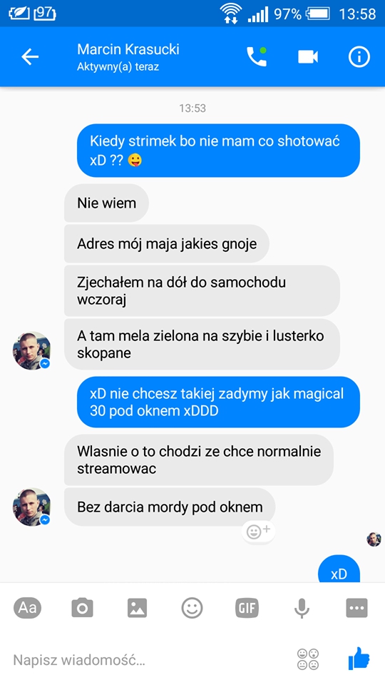 Jaca ma za duzy ping. Daniel poszedl rzygac i strim off, ciekawe czy wroci