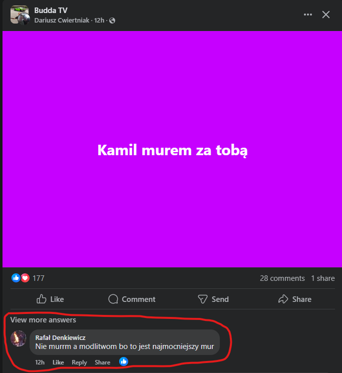 Wracając do wyznawców buddy, bo pewnie się zastanawiacie, czy jakkolwiek wpłynęło to na ich postrzeganie swojego idola. Otusz nie. Dominuje narracja, że okraść państwo to nie grzech, że "bynajmniej dał dla powodzian", że nie powinni zamykać dobrego chłopaka itp. Niektórzy idą dalej i nazywają go polskim robin hudem, który kradł wyłącznie po to, żeby rozdawać biednym. Najczęściej przewija się przy tym argument, że politycy też kradną, a on okradł polityków (bo przecież pieniądze państwa to politycy, a nie podatnicy). Tworzone są też teorie, że to osobista zemsta tuska, któremu się nie spodobało, że budda przekazał 3 kontenery powodzianom. No i pan kamil promował szlachetne postawy (wcale nie promował wyścigów po mieście albo hazardu wśród dzieci), więc nawet jeśli się przy tym nakradł, to nic nie szkodzi. To tak w dużym skrócie, jeżeli pomogłem to dajcie reputka.