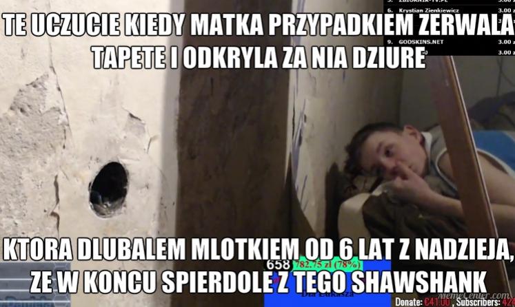 Daniel się zdenerwował i kazał mu wypierdalać za co został nazwany cymbałem przez włóczykija. Guzik obliczył, że do remontu będzie potrzebne 120 kg gładzi, a widzowie na czacie zaczeli spamować żeby te ściany zrobił tynkiem albo płytami gipsowymi, a nie gładzią. Na ulicy przed domem Daniela zebrało się 20 osób obserwując remont, zjawił się też Łysy z jego kumplem i krążyli na rowerach i szukali okazji do rzucenia jaja przez okno gdy one będzie otwarte. Wjebali jajo do pokoju przez okno i daniel postanowił zrobić kociołek menelixa czyli mix trunków w wielkim garze.
