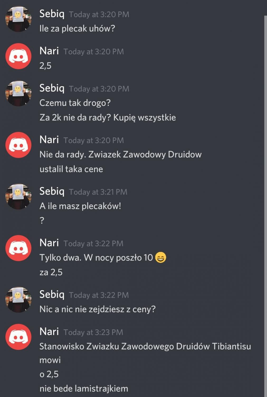 kurwa przekmincie jakby 90% druidow z serwera serio zrobilo zmowe cenową i nikt na serwerze by nie mial uhów, a potem takim druidem chodzisz i zabijasz 40 paladynów z fire fieldów bo sie chlop leczyc nie moze