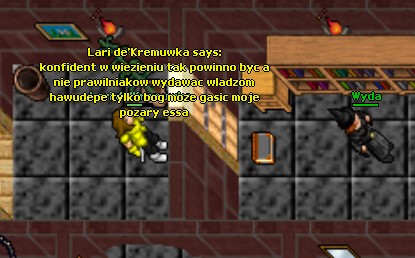 tu spotkalem pewną konfidentke co WYDAła dobrych ziomeczków na smierc z rąk giga pajonka, niestety ma immunitet u grefjruta77, nie da się jej zmłotkować i jedyne co moglem zrobić to ukraść jej koszyk, ciastka oraz zamknąć w pierdlu, zeby miala czas przemyslec swoje zachowanie: