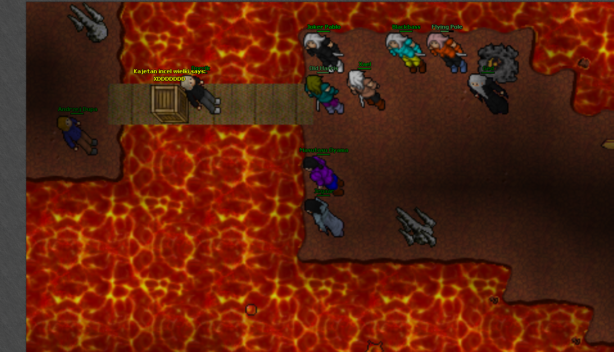 Podczas gdy ja wycinałem zdjęcia, Kleopatra stała sobie pod depo mierząc się wzrokiem ze znanym i lubianym łowcą i torreadorem z forumka, będąc świadoma, że sprowokowany może wyjebać mort hura :monkas Później poszła do gildii paladynów świętować udane łowy i nowy poziom magiczny wypijając przy tym całą amforę wina. Pamiętajcie również, żeby gotówkę trzymać w depo i przesyłać sobie parcelami, gdyż używanie BOTa na tym serwerq jest surowo wzbronione!