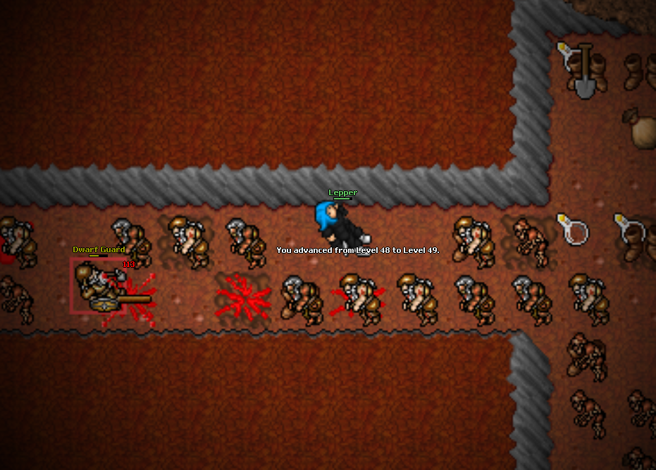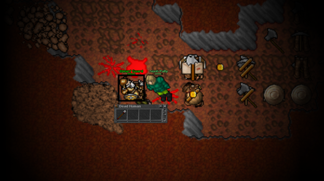 Pokonany oddał pałkę :) Plecak schował w martwym dwarfie, ale go znalazłem