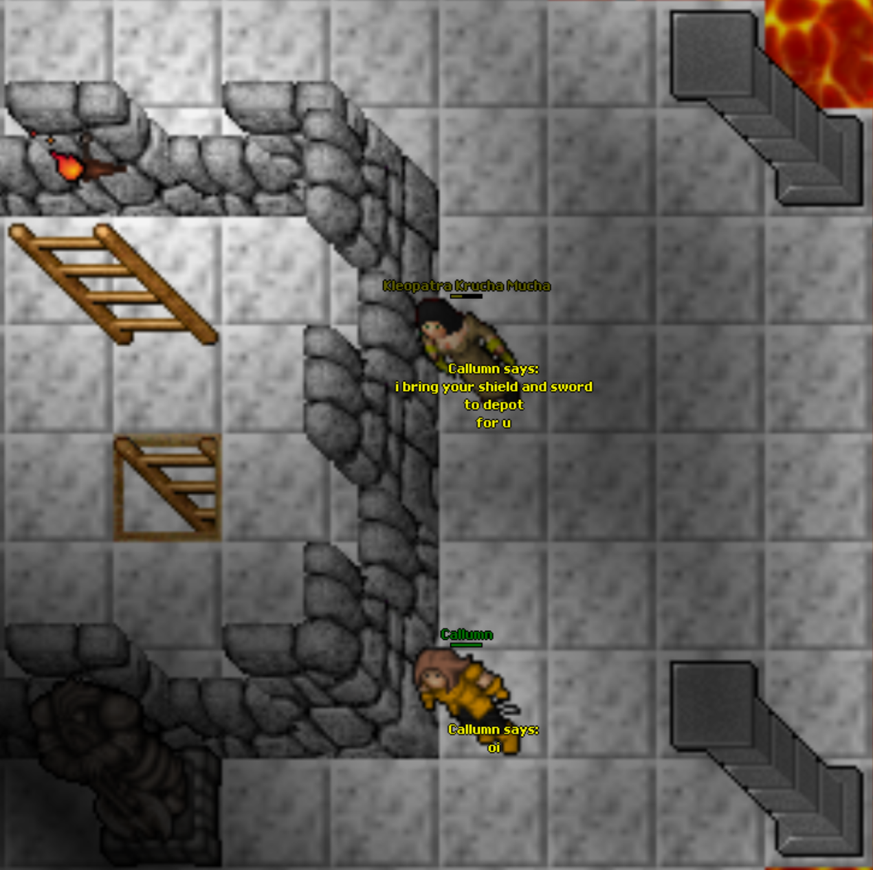 Tym razem zebrał klapsa i poszedł spać, choć też miotał nieźle i wyssał manę tak że nie było na exurę, ale na takiego patafiana uha szkoda więc twardo wystałem. Zleciała znowu stalowa tarcza, ale capa już nie było, do tego w skrzynce był sword, który wywaliłem na ziemię. Zauważył to przechodzący obok EK i wytargał przedmioty.
