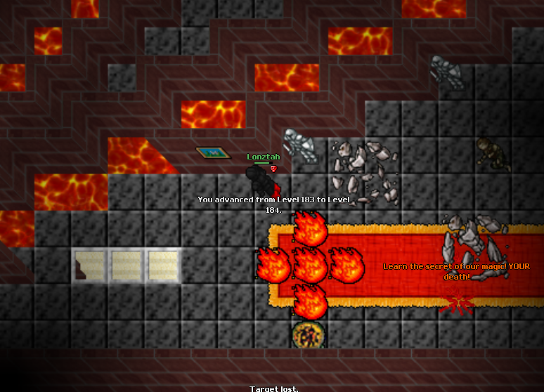 Nie sugeruj się tym, że nic w Ciebie nie weszło. Po prostu ilość oczek w kostce postanowiła nie przekraczać liczby 3 albo nie spadło z Ciebie nic, bo miałeś full seta i aola, a rzecz którą wrzuciłeś do bagna to tylko dla zmyłki. Co do mechaniki, że zagraciłem Ci fire fieldem rope place'a, to również przypadek. Po prostu nie chciałeś się ruszyć (może próbowałeś użyć liny na siebie, co równiez nie działa)