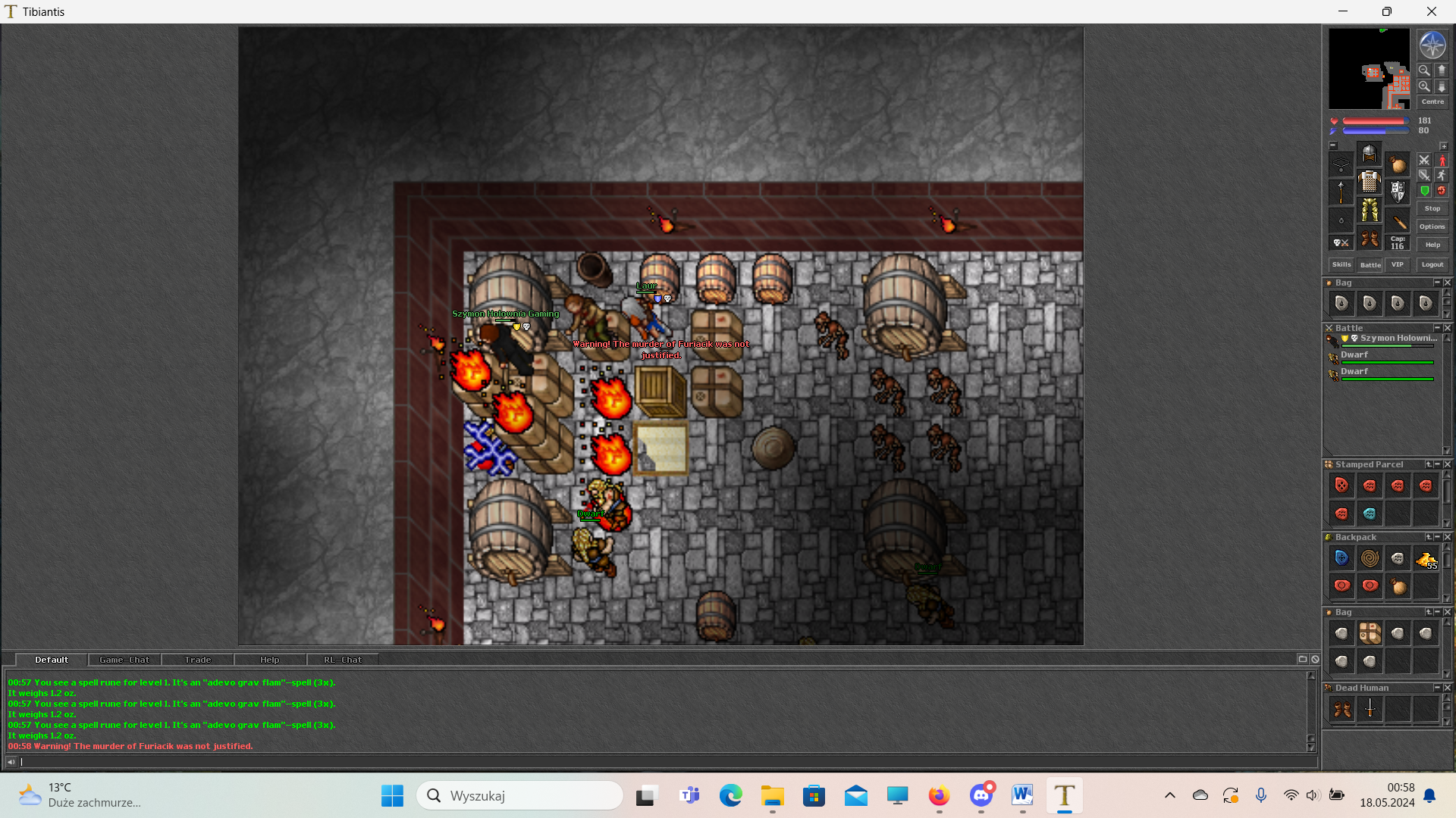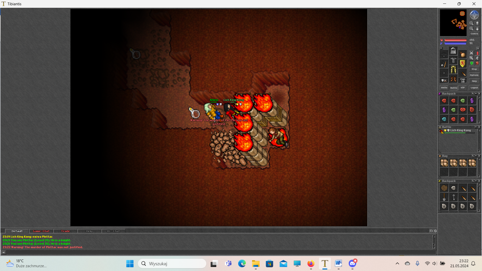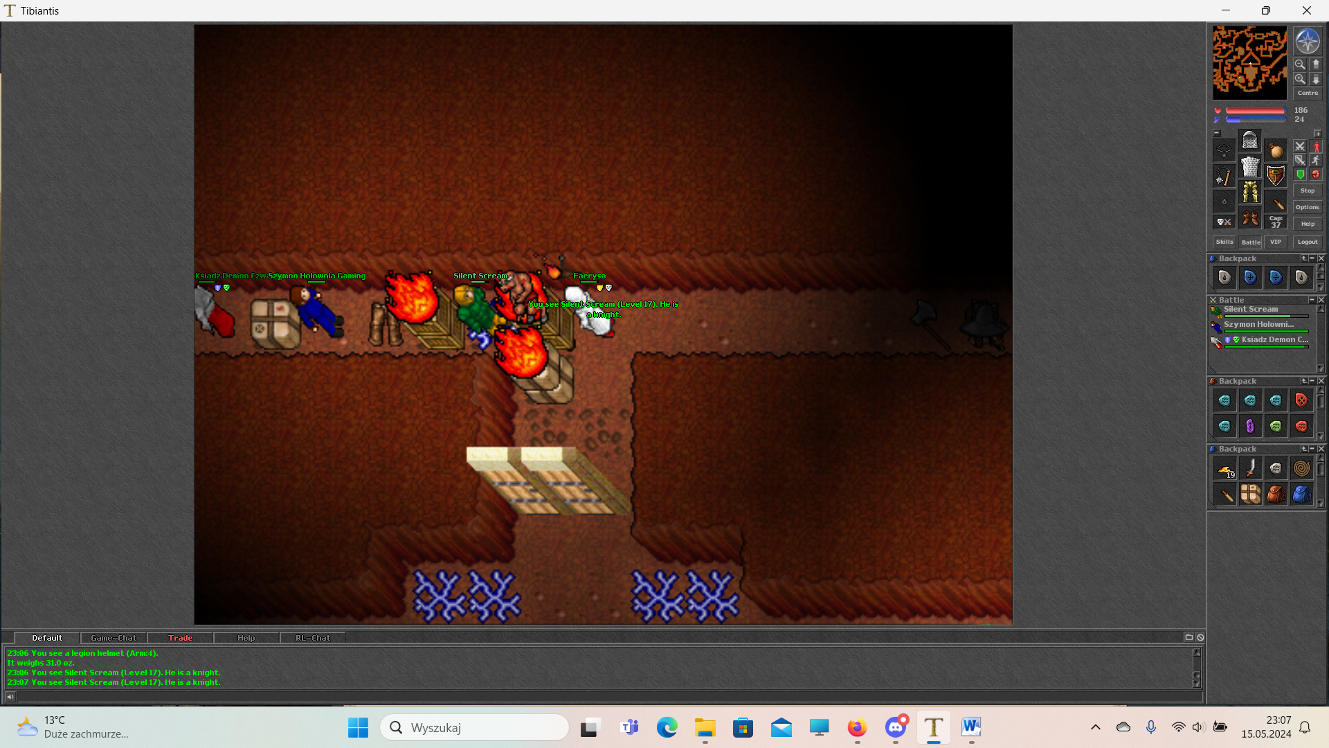 znowu 35 knight padł. Tym razem nie dał nam golden armora i vempajer szilda. Miał jedynie 2 plecaki uh, brass legi i jakieś noobowskie eq ale frajda jest mimo, że afk był.