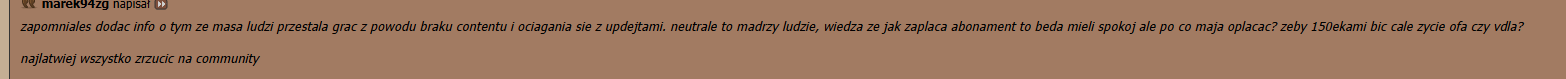 w sumie masz racje, myslalem ze to za post tutaj - zapomnialem o tym moim drobnym zarcie na dc. ale to wszystko przez update - 6dni zostalo wiec emocje siegaja zenitu